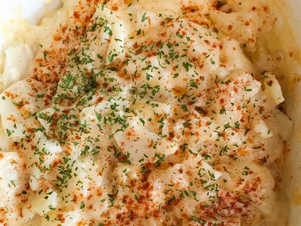 - Lascia riposare per 5 minuti, quindi spolverizza con prezzemolo essiccato e paprika, se lo desideri.
