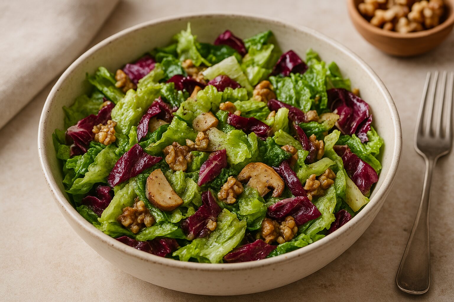 L’insalata d’autunno è un piatto che celebra i sapori ricchi e avvolgenti di questa stagione, perfetta per un pranzo leggero o come contorno raffinato per una cena autunnale. Grazie all’incontro di ingredienti freschi e genuini, come i funghi porcini e le noci, questa ricetta rappresenta un’ottima scelta per chi desidera portare in tavola i colori e i profumi della natura. La presenza della scarola e del radicchio rosso aggiunge un contrasto di sapori che rende ogni boccone un’esperienza gustativa unica.