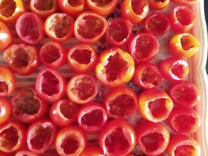 - A questo punto capovolgere i pomodorini per fare sgocciolare l'acqua di vegetazione.